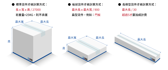 - 不規則/圓柱貨件 : 以外觀最大長、寬、高計算